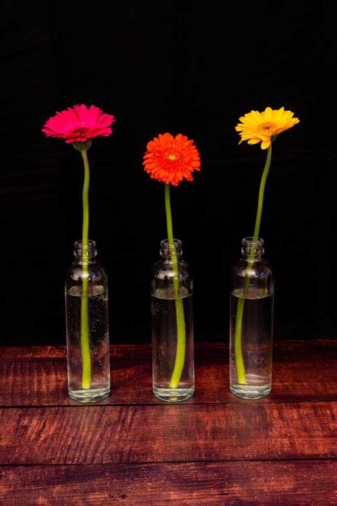 einzelne Blumen oder Blüten statt großer Arrangements